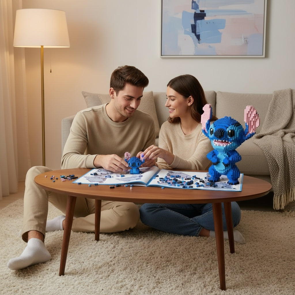 Мини блокчетата позволяват изключителна прецизност и реализъм – всяка част допринася за впечатляващия 3D вид на готовия Стич.